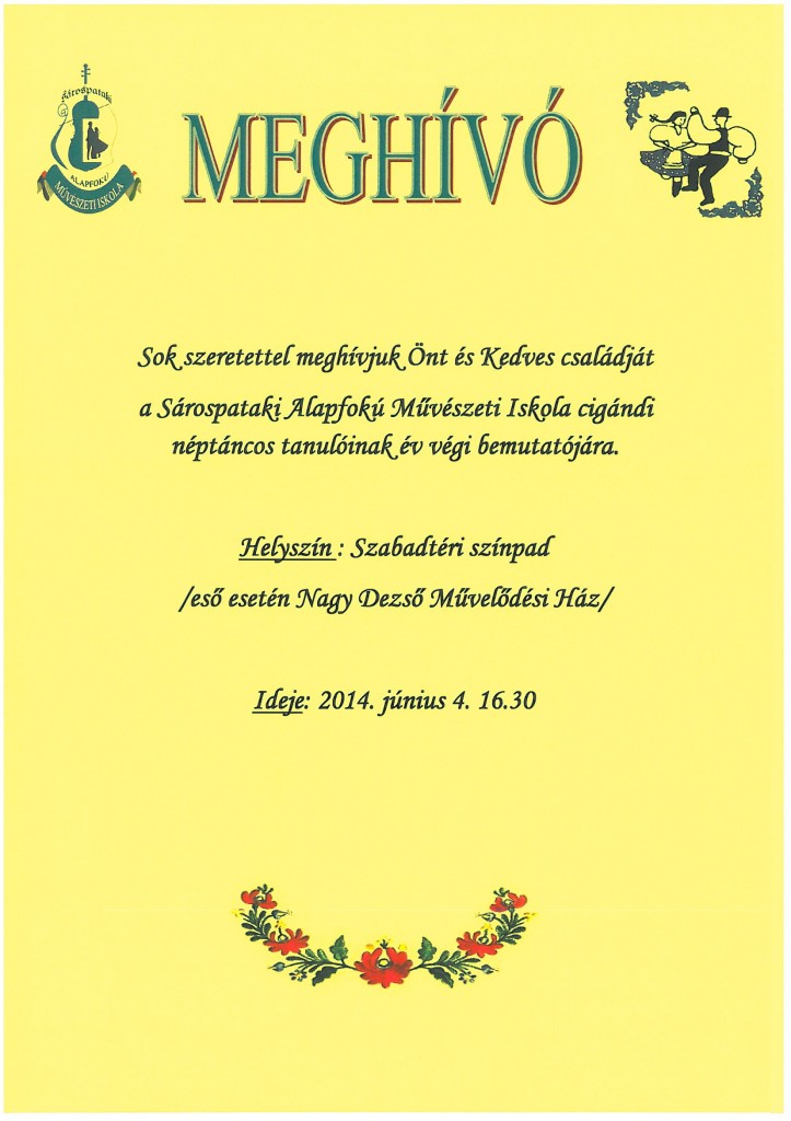 a Sárospataki Alapfokú Művészeti Iskola cigándi néptáncos tanulóinak év végi bemutatójára.