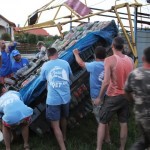 Ezt követően a hajókat szétszedték,majd felszállították a Falumúzeum mellé, és az este legfontosabb momentumaként egy kukásautóban bezúzták a palackokat.